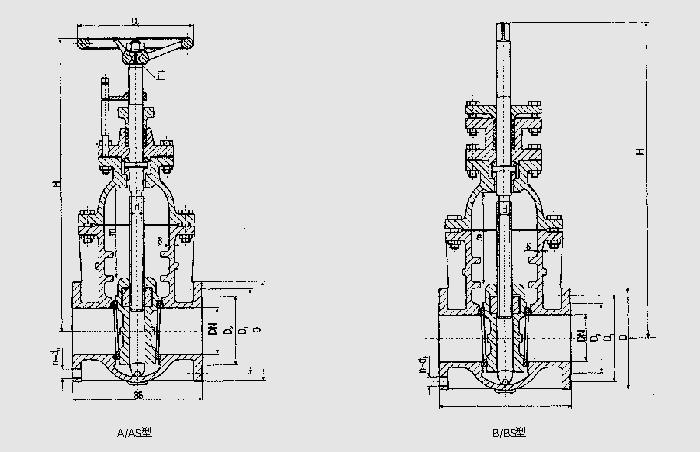 <div> <div>A型、B型的基本尺寸Dimensions<br /> </div> </div> <div> <p> </p> <table border="1" cellspacing="0" cellpadding="0"> <tbody> <tr> <td valign="center" nowrap="nowrap">公称</td> <td valign="top" colspan="3" nowrap="nowrap">结构尺寸StructureDimension</td> <td valign="center" nowrap="nowrap"> </td> <td valign="top" colspan="5" nowrap="nowrap"> </td> <td valign="top" colspan="2" nowrap="nowrap"> </td> <td valign="top" colspan="2" nowrap="nowrap"> </td> <td valign="center" nowrap="nowrap">手轮</td> <td valign="center" nowrap="nowrap">升程</td> <td valign="top" colspan="2" nowrap="nowrap">参考重量</td> </tr> <tr> <td valign="center" nowrap="nowrap">通径<br /> DN<br /> </td> <td valign="center" nowrap="nowrap"> </td> <td valign="top" colspan="2" nowrap="nowrap">H<br /> <br /> </td> <td valign="center" nowrap="nowrap">壁厚<br /> Thickness<br /> </td> <td valign="top" colspan="5" nowrap="nowrap">法兰Flange<br /> <br /> </td> <td valign="top" colspan="2" nowrap="nowrap">螺栓Bont<br /> <br /> </td> <td valign="top" colspan="2" nowrap="nowrap">阀杆Stem<br /> <br /> </td> <td valign="center" nowrap="nowrap">Hand<br /> <br /> wneel</td> <td valign="center" nowrap="nowrap">Lift<br /> <br /> Range</td> <td valign="top" colspan="2" nowrap="nowrap">Weight(kg)<br /> <br /> </td> </tr> <tr> <td valign="center" nowrap="nowrap">(mm)<br /> </td> <td valign="center" nowrap="nowrap">L<br /> </td> <td valign="center" nowrap="nowrap"><br /> A型</td> <td valign="center" nowrap="nowrap"><br /> B型</td> <td valign="center" nowrap="nowrap">6<br /> </td> <td valign="center" nowrap="nowrap">D<br /> </td> <td valign="center" nowrap="nowrap">Di<br /> </td> <td valign="center" nowrap="nowrap">D2<br /> </td> <td valign="center" nowrap="nowrap">d0<br /> </td> <td valign="center" nowrap="nowrap">b<br /> </td> <td valign="center" nowrap="nowrap">n个<br /> </td> <td valign="center" nowrap="nowrap">Th.<br /> </td> <td valign="center" nowrap="nowrap">d1<br /> </td> <td valign="center" nowrap="nowrap">S<br /> </td> <td valign="center" nowrap="nowrap">Do<br /> </td> <td valign="center" nowrap="nowrap">m<br /> </td> <td valign="center" nowrap="nowrap">A型<br /> </td> <td valign="center" nowrap="nowrap">B型<br /> </td> </tr> <tr> <td valign="center" nowrap="nowrap">80</td> <td valign="center" nowrap="nowrap">220</td> <td valign="center" nowrap="nowrap">440</td> <td valign="center" nowrap="nowrap">375</td> <td valign="center" nowrap="nowrap">9</td> <td valign="center" nowrap="nowrap">170</td> <td valign="center" nowrap="nowrap">138</td> <td valign="center" nowrap="nowrap">118</td> <td valign="center" nowrap="nowrap">15</td> <td valign="center" nowrap="nowrap">16</td> <td valign="center" nowrap="nowrap">8</td> <td valign="center" nowrap="nowrap">M14</td> <td valign="center" nowrap="nowrap">Tr26x10(P5)LH</td> <td valign="center" nowrap="nowrap">19</td> <td valign="center" nowrap="nowrap">200</td> <td valign="center" nowrap="nowrap">92</td> <td valign="center" nowrap="nowrap">38.7</td> <td valign="center" nowrap="nowrap">36.8</td> </tr> <tr> <td valign="center" nowrap="nowrap">100</td> <td valign="center" nowrap="nowrap">230</td> <td valign="center" nowrap="nowrap">470</td> <td valign="center" nowrap="nowrap">400</td> <td valign="center" nowrap="nowrap">10</td> <td valign="center" nowrap="nowrap">190</td> <td valign="center" nowrap="nowrap">158</td> <td valign="center" nowrap="nowrap">138</td> <td valign="center" nowrap="nowrap">15</td> <td valign="center" nowrap="nowrap">16</td> <td valign="center" nowrap="nowrap">8</td> <td valign="center" nowrap="nowrap">M14</td> <td valign="center" nowrap="nowrap">Tr26x10(P5)LH</td> <td valign="center" nowrap="nowrap">19</td> <td valign="center" nowrap="nowrap">200</td> <td valign="center" nowrap="nowrap">112</td> <td valign="center" nowrap="nowrap">445</td> <td valign="center" nowrap="nowrap">42.6</td> </tr> <tr> <td valign="center" nowrap="nowrap">125</td> <td valign="center" nowrap="nowrap">245</td> <td valign="center" nowrap="nowrap">515</td> <td valign="center" nowrap="nowrap">445</td> <td valign="center" nowrap="nowrap">11</td> <td valign="center" nowrap="nowrap">215</td> <td valign="center" nowrap="nowrap">183</td> <td valign="center" nowrap="nowrap">164</td> <td valign="center" nowrap="nowrap">15</td> <td valign="center" nowrap="nowrap">16</td> <td valign="center" nowrap="nowrap">10</td> <td valign="center" nowrap="nowrap">M14</td> <td valign="center" nowrap="nowrap">Tr28x10(P5)LH</td> <td valign="center" nowrap="nowrap">22</td> <td valign="center" nowrap="nowrap">225</td> <td valign="center" nowrap="nowrap">138</td> <td valign="center" nowrap="nowrap">565</td> <td valign="center" nowrap="nowrap">54</td> </tr> <tr> <td valign="center" nowrap="nowrap">150</td> <td valign="center" nowrap="nowrap">260</td> <td valign="center" nowrap="nowrap">560</td> <td valign="center" nowrap="nowrap">470</td> <td valign="center" nowrap="nowrap">12</td> <td valign="center" nowrap="nowrap">240</td> <td valign="center" nowrap="nowrap">208</td> <td valign="center" nowrap="nowrap">190</td> <td valign="center" nowrap="nowrap">15</td> <td valign="center" nowrap="nowrap">16</td> <td valign="center" nowrap="nowrap">12</td> <td valign="center" nowrap="nowrap">M14</td> <td valign="center" nowrap="nowrap">Tr28x10(P5)LH</td> <td valign="center" nowrap="nowrap">24</td> <td valign="center" nowrap="nowrap">250</td> <td valign="center" nowrap="nowrap">165</td> <td valign="center" nowrap="nowrap">69.9</td> <td valign="center" nowrap="nowrap">66</td> </tr> <tr> <td valign="center" nowrap="nowrap">200</td> <td valign="center" nowrap="nowrap">290</td> <td valign="center" nowrap="nowrap">660</td> <td valign="center" nowrap="nowrap">555</td> <td valign="center" nowrap="nowrap">14</td> <td valign="center" nowrap="nowrap">310</td> <td valign="center" nowrap="nowrap">273</td> <td valign="center" nowrap="nowrap">250</td> <td valign="center" nowrap="nowrap">17</td> <td valign="center" nowrap="
